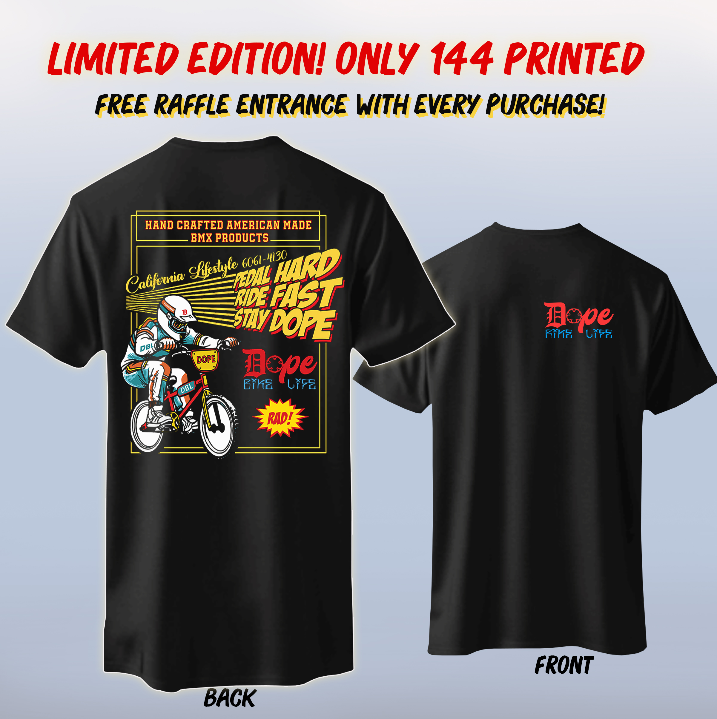 Stay Dope T-Shirt! Original design screen printed on high quality shirts with front and back print. Every purchase enters you into a raffle to win 1 of 5 different prizes. This is pre-order and ships soon! Limited edition, only 144 collectible shirt will be printed.